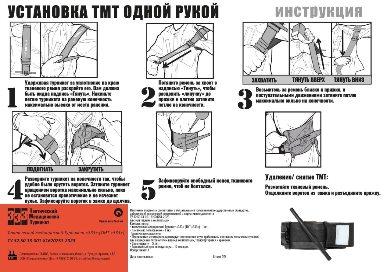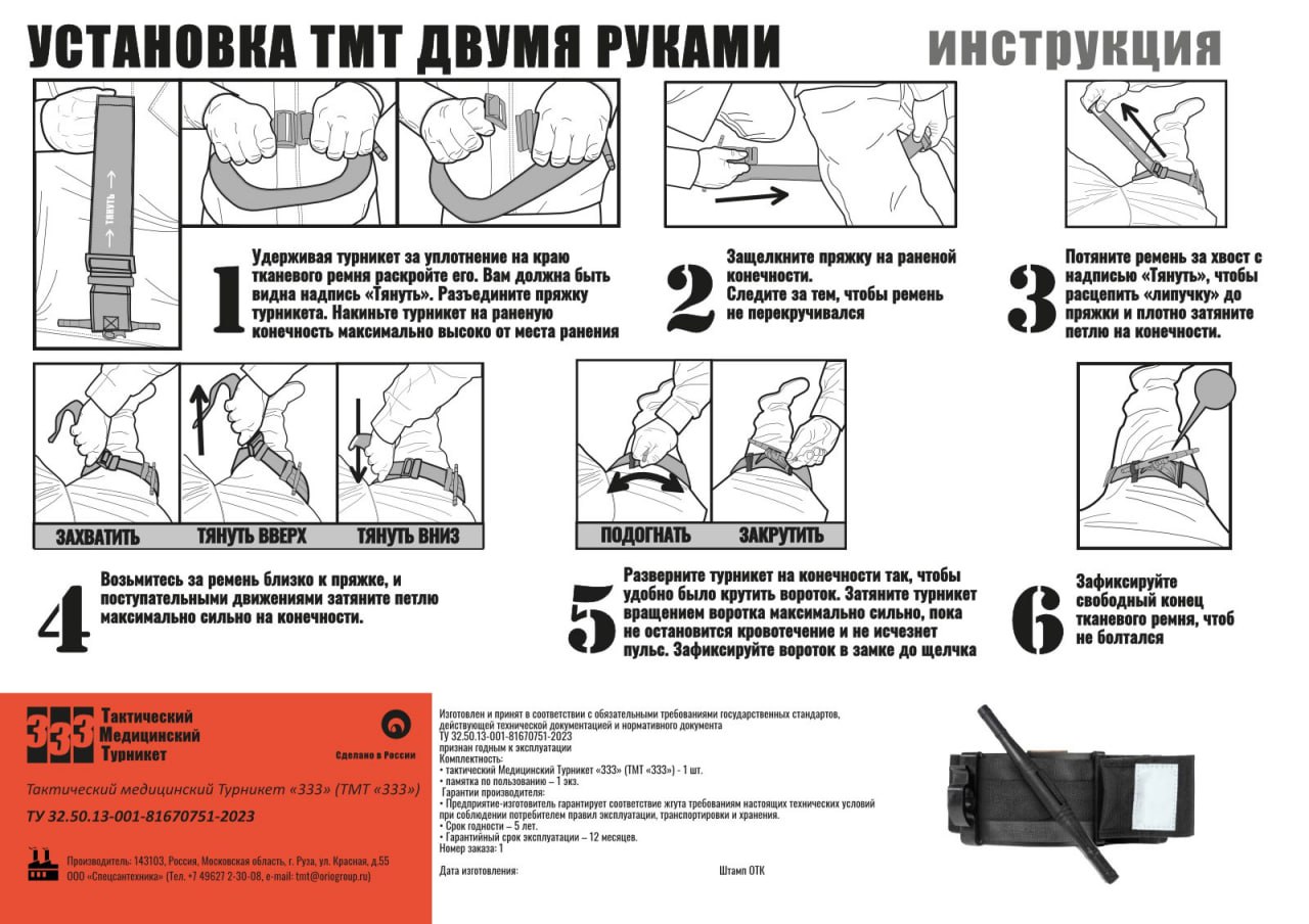 Жгут-турникет ТМТ «333» изготовлен из прочных износостойких материалов и может эксплуатироваться в любых погодных условиях: на морозе или в жаре.